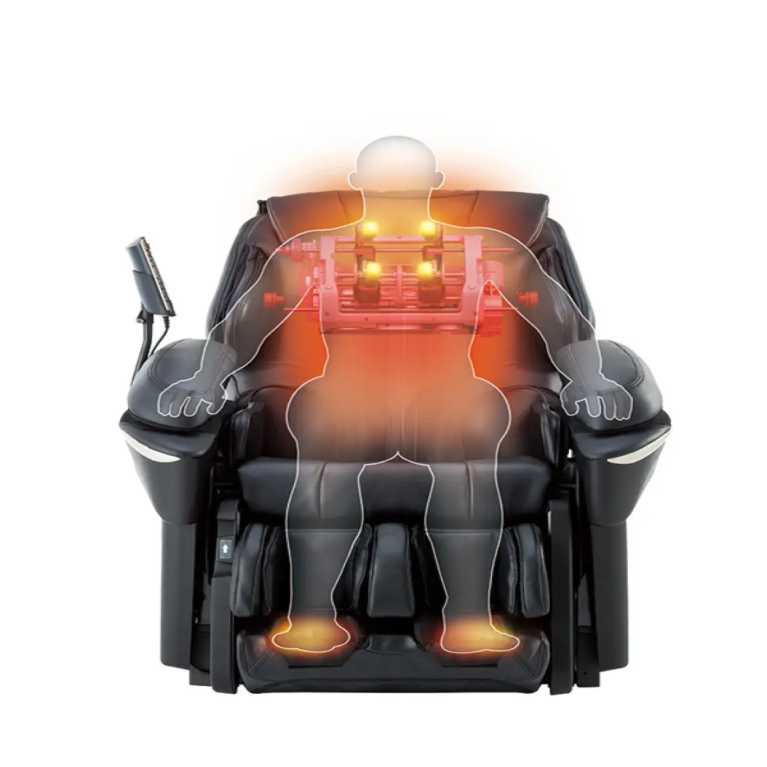 Данная модель поддерживает технологию термального массажа, выполняемого при помощи подогреваемых роликов, имитирующих руки профессионального массажиста. Термальный массаж устраняет напряжение в мышцах спины, шеи, плеч, а также оказывает успокаивающее, расслабляющее действие.